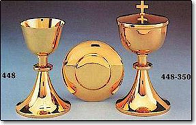 Gold plated with well paten, 7-1/4" high, 3-3/4" diameter.