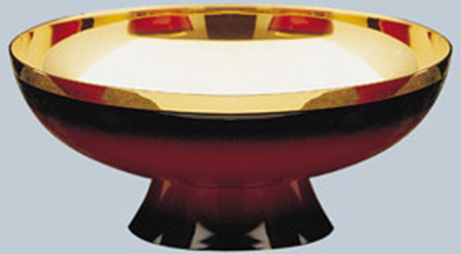 Brass gold plated, Red enamel finish. 2-3/4" high, 6-1/2" cup diameter.