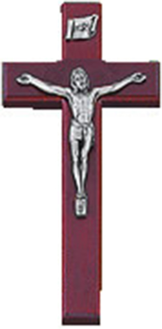Walnut finished cross with fine pewter Corpus. Pictured in cherry wood finish which is no longer available.