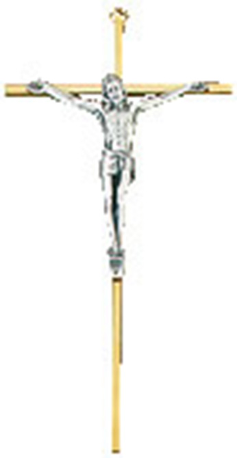 24 Karat gold plated brass cross. Fine pewter Corpus