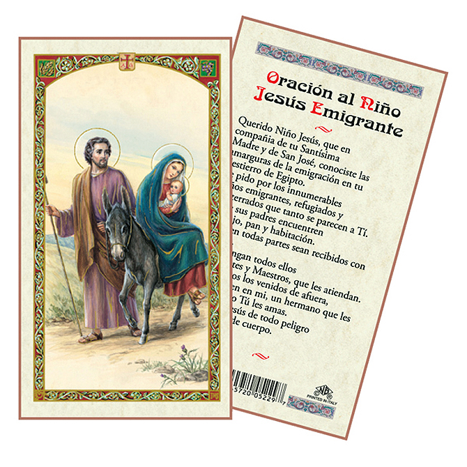 Laminated holy card in full color with a prayer on the back in Spanish. Imported. 2-1/2" x 4-1/2".