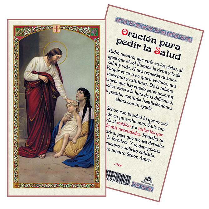Laminated holy card in full color with a prayer on the back in Spanish. Imported. 2-1/2" x 4-1/2".