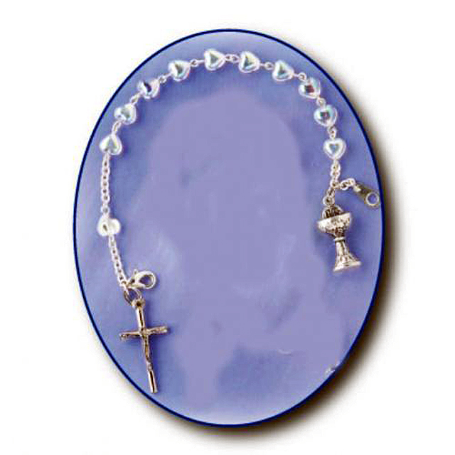 Heart shaped crystal Aurora Borealis rosary bracelet. Gift boxed.