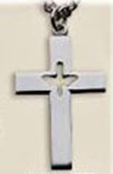 Sterling silver cross. With 24" stainless steel chain. Gift boxed.