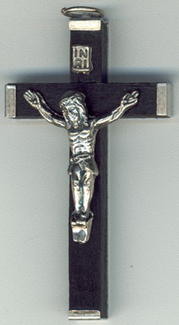 Wood nickel bound crucifix.
