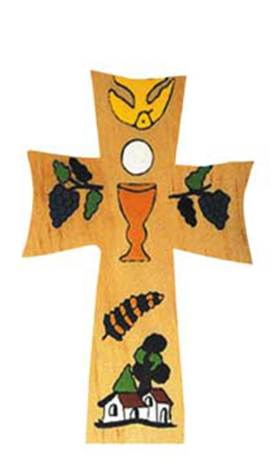 First Holy Communion cross made of wood and hand decorated in El Salvador.