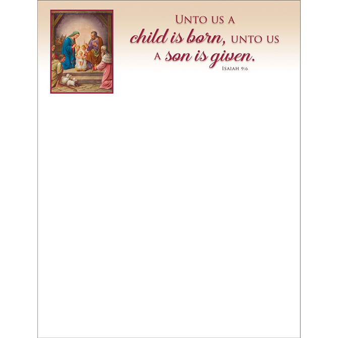 Full-color letterhead that is perfect for a Christmas message or appeals letter. Sold in packs of 100's, 500's, and 1,000's. 500 per box. 8-1/2" x 11".