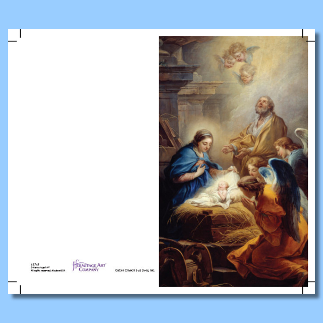 Full-color announcement folder that has space for printing on three pages, inside (left and right) and back page. Perfect for schedule of services and events so parishioners stay informed. Sold in packs of 100. 5-3/4" x 6-3/4" flat, unfolded.
