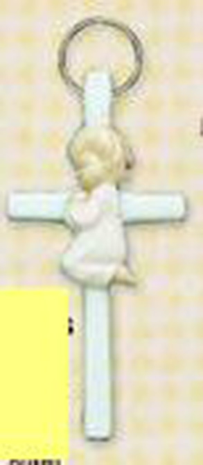 Wood cross with pewter praying girl for hanging. Boxed. 5-1/2