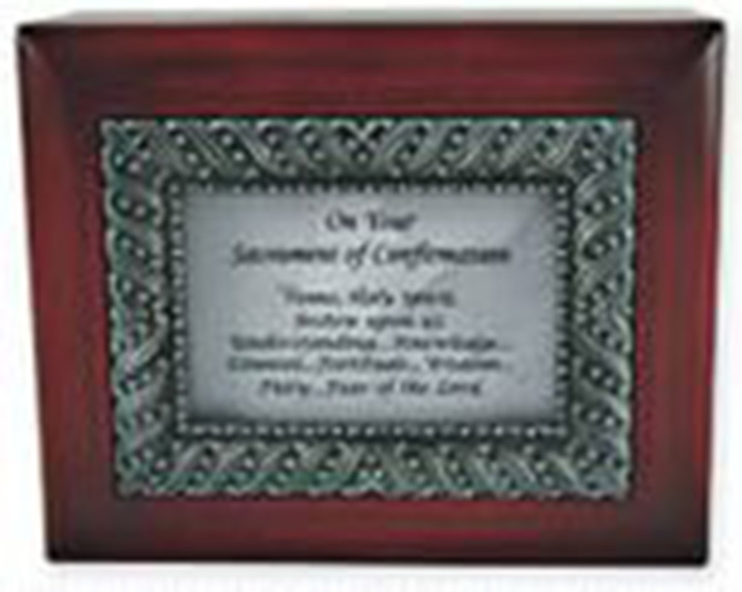 Rosewood. Features a decorative pewter frame verse: seven gifts of the holy spirit black velvet lined 4" x 5".