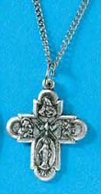 A 1-1/2" 4-way cruciform medal on a 24" endless stainless steel chain. Boxed.