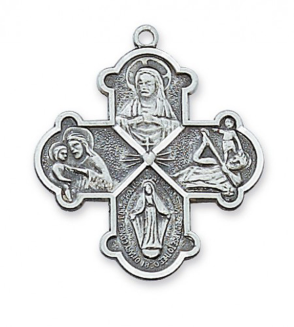 Sterling four way medal. With 24" stainless steel chain. Gift boxed.