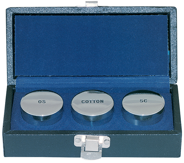 Baptismal Set. Oil containers 1-1/2 inch diameter, OS, SC and Cotton. Case 6 inch x 3 inch x 2-1/4 inch deep. Stainless steel.