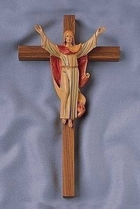 Fontanini Crucifix. Wood cross, polymer Risen Christ Corpus