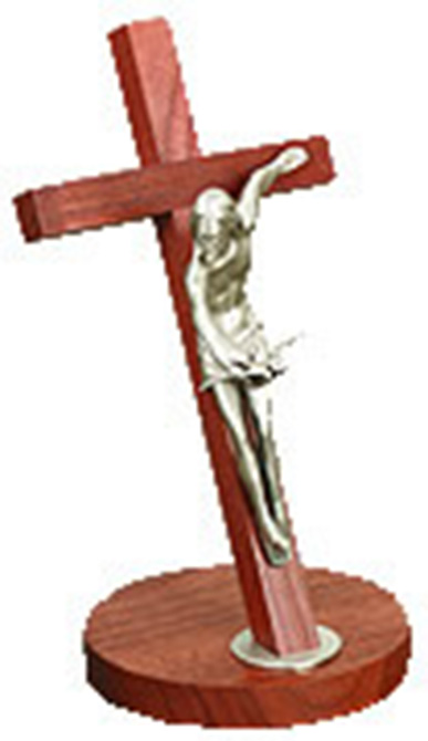 Walnut cross and resin "Gift of the Spirit" figure. Supplied with wooden base. Cross could be hanged when base is removed. Boxed. .