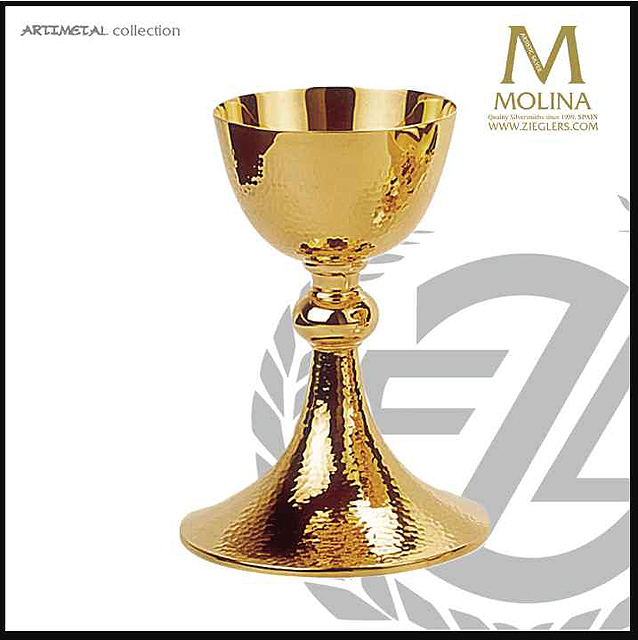 Sterling silver, gold lined, smooth clean lines with soft round hammering. 8-1/2" high, 5" cup diameter, 18 ounce capacity.