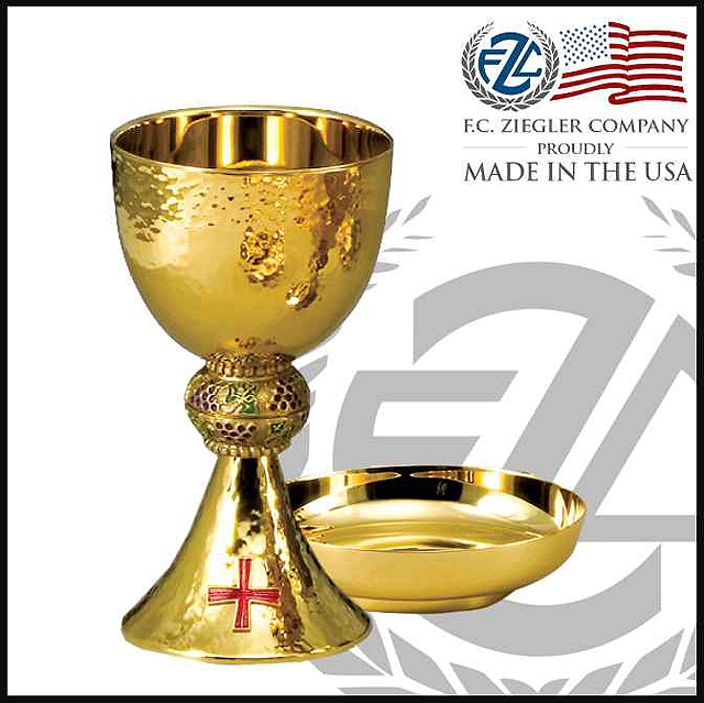 7-1/2" high, 4-1/4" cup diameter, cast node, sterling silver inner cup, Flat Paten 6-3/8" Diameter