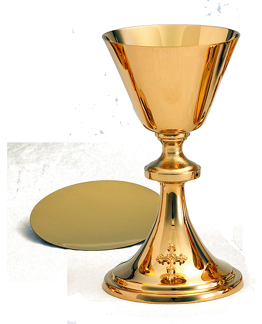 24 Karat Gold Plated, high 7-3/4", 9 ounce capacity with 5-1/2" scale paten.