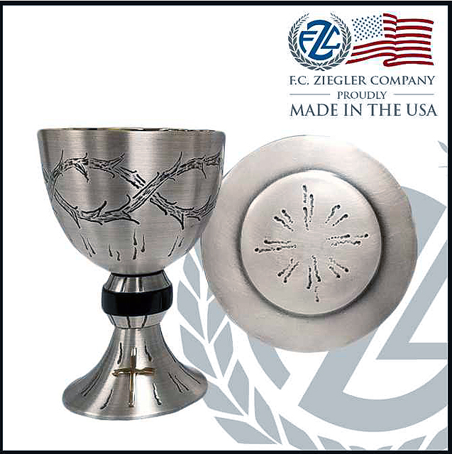 Chalice And Well Paten | Crown Of Thorns Design | Oxidized Silver Finish