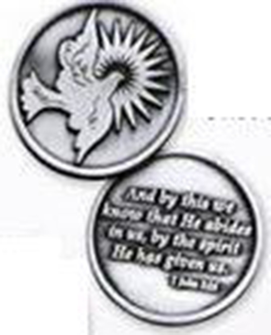 Fine Pewter. On the back side: And by this we know that He abides is us, by the spirit He has given us.