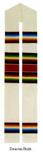 Deacon stole fully lined and interlined, wrinkle resistant polyester. Deacon Latino motif embroidery. ( Size 53" x 5" )