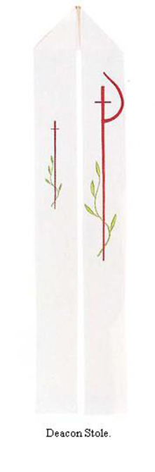 Deacon stole fully lined and interlined, wrinkle resistant polyester. ( Size 53" x 5" ). Please indicate color in comment section of your order.