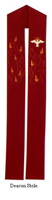 Deacon stole fully lined and interlined, wrinkle resistant polyester. Holy Spirit embroidery. ( Size 53" x 5" )