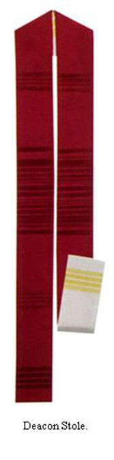 Deacon stole reversible fully lined and interlined, wrinkle resistant polyester. Striped design woven into fabric. ( Size 53" x 5" ). Please indicate color in comment section of your order.