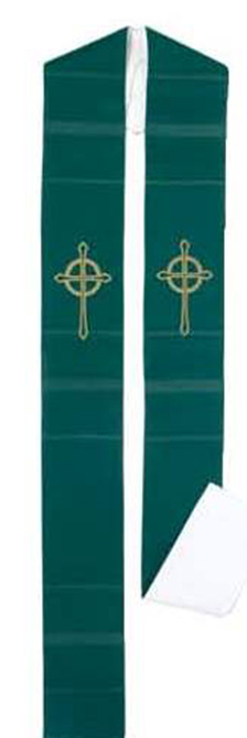 Soft, fully machine washable wrinkle resistant polyester stole. Fully lined and interlined for perfect draping. Clergy cut stole is approximately 56" x 5". Reversible, white on one side, green on the other side.