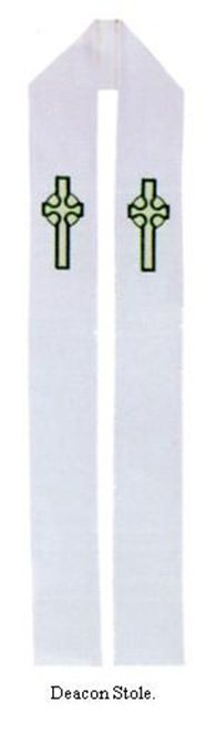 Deacon stole fully lined and interlined, wrinkle resistant polyester. Celtic Cross embroidery. ( Size 53" x 5" ). Please indicate color in comment section of your order.