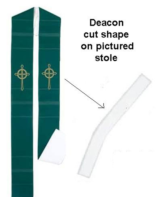 Soft, fully machine washable wrinkle resistant polyester stole. Fully lined and interlined for perfect draping. Deacon cut stole is approximately 53" x 5". Reversible, white on one side, green on the other side.