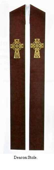 Deacon stole reversible fully lined and interlined, wrinkle resistant polyester. Celtic Cross embroidery. ( Size 53" x 5" ). Please indicate color in comment section of your order.
