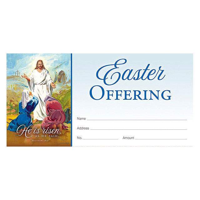 Full-color offering envelope that has space for name, address, envelope number, and amount of donation. Shrink wrapped in packs of 100, 3-1/8" x 6-1/4". ** FACTORY DISCONTINUED. LIMITED STOCK AVAILABLE SO SOLD ONLY WITH LETTERHEADS OR BULLETINS OR FOLDERS.**