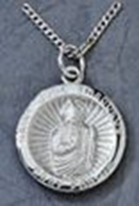 High quality, rhodium plated medal on 18" stainless steel chain. Gift boxed.