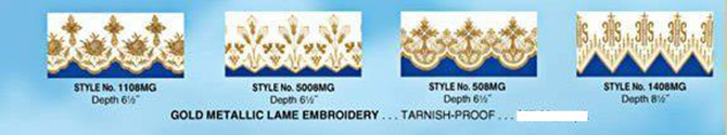 Altar linen made of 100% polyester with metallic gold Wheat lame embroidery, tarnish proof, design-depth 6-1/2", 58" width . Additional charge for hemming. ( Maximum 15 yards only. If order exceeds 15 yards, give breakdown on cuts needed. )