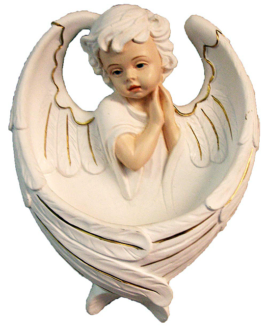 Resin all white angel holy water font, no color nor highlights. Pictured item shown is in color SKU 35-2060. 6" Boxed