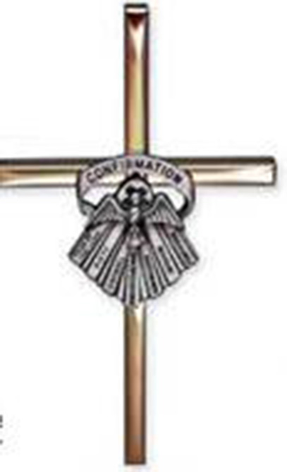Brass cross with silver oxidized Holy Spirit and seven gifts.