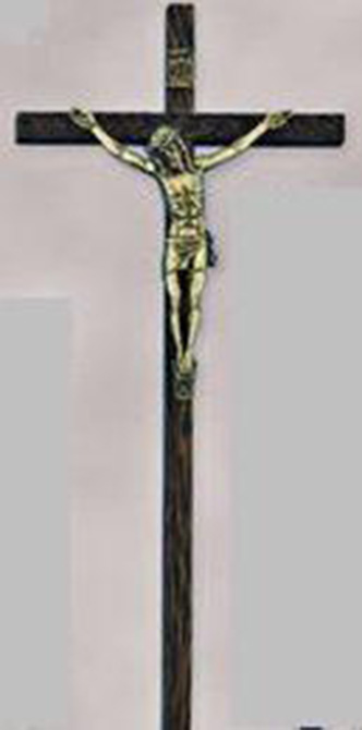 Beautiful natural grain hardwood hanging Crucifix. Cast Bronze color metal Corpus