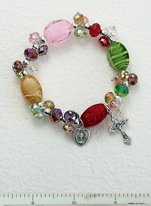 Stretch bracelet with Miraculous heart and crucifix. Carded.