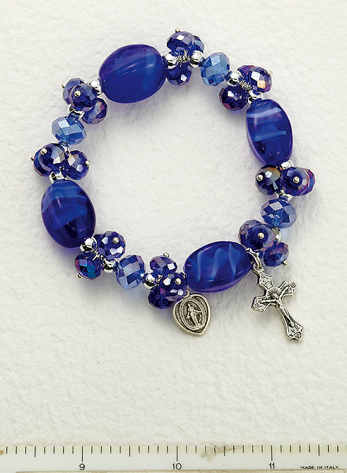 Stretch bracelet with Miraculous heart and crucifix. Carded.