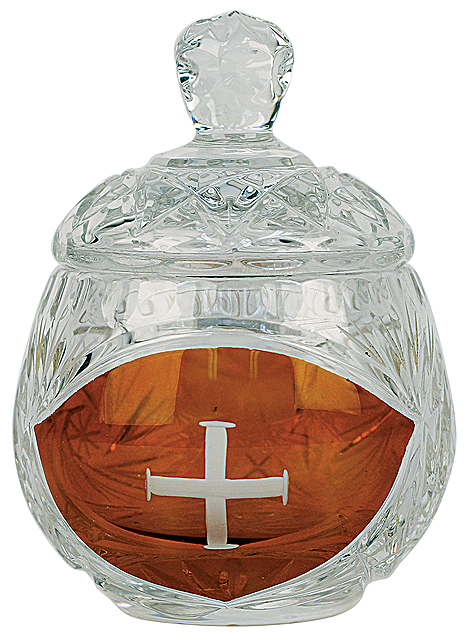 Ablution Cup. Or for the distribution of ashes. Crystal with engraved cross. 3-3/8"H., 3 oz. cap.