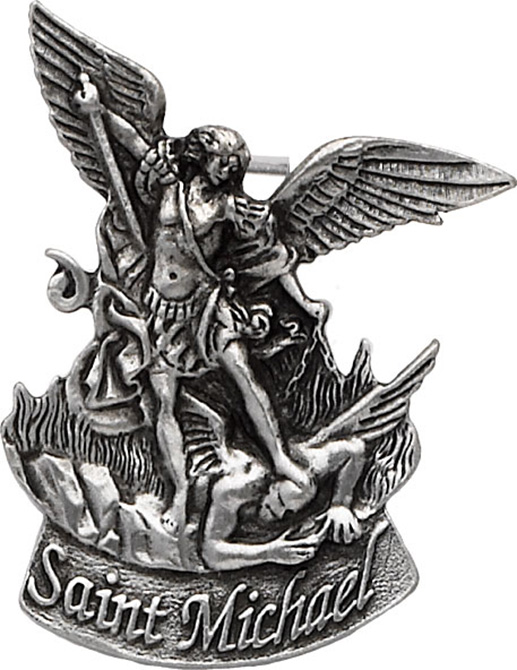 Automobile Visor clip with image of St Michael.