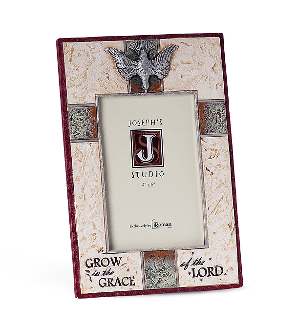 9-1/2" Confirmation photo frame. Holds 4" x 6" photo. Resin-stone mix.
