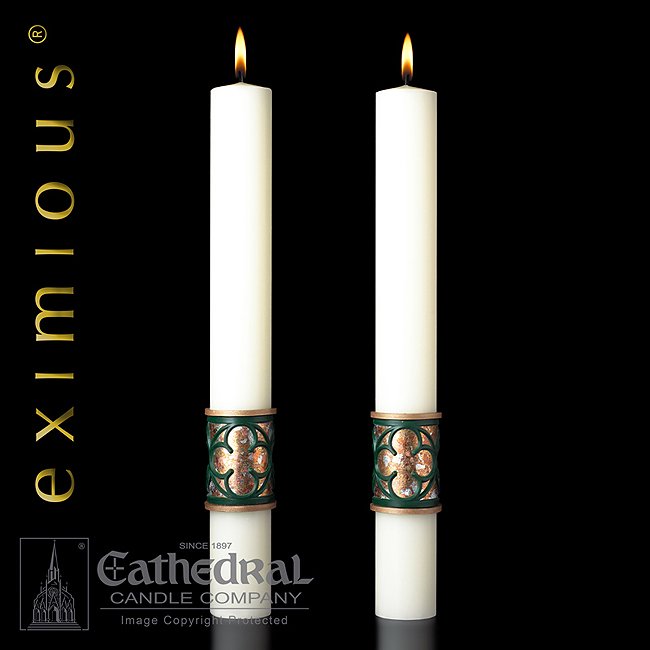 An attractive pair of altar candles designed to complement the design of the Christus Rex Paschal Candle.
